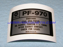Loading... Please wait...Label, PF 970 Oil Filter, for 90~95 ZR-1 LT5. Sold individually. One (1) label is required per engine.